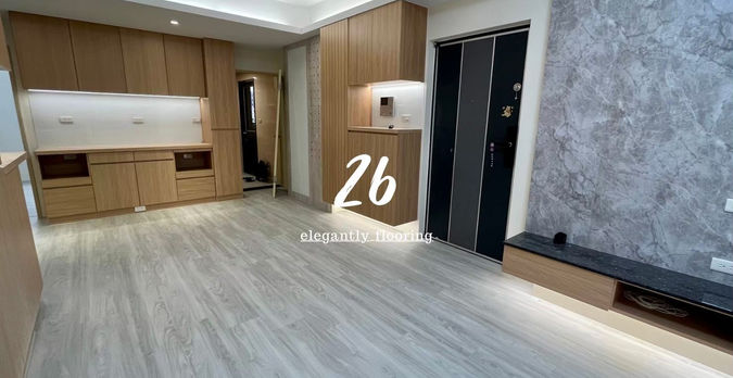 業主希望在灰色基調中帶出自然木紋層次,因此選用我們的 6.5mm SPC地板 #26號色,表面細緻霧面紋理能中和木作立面的深色調,讓整體空間更加協調。完工後搭配木作收邊與間接光源,整體空間質感更加提升,呈現低調卻極具設計感的現代風居家。